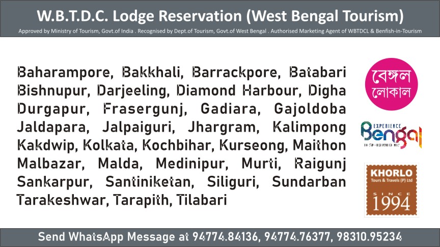 Do you want to reserve a Govt. tourist lodge in West Bengal ?? We recommend you to use WBTDC properties. WBTDC Lodges have the courage to be different and offer customised facilities & prompt services for their guest who have the right expectations and willing to pay the right prices. Now you can check availability of tourist lodges and packages. Just choose your destination, tell us your date of journey, no. of rooms required. We are committed to offer a higher level of service to our guests. We always try to add values over the purchased services. We will reserve the room for you. We are official authorised marketing agent of WBTDCL and also officially recognised by Dept. of Tourism, Govt. of West Bengal.