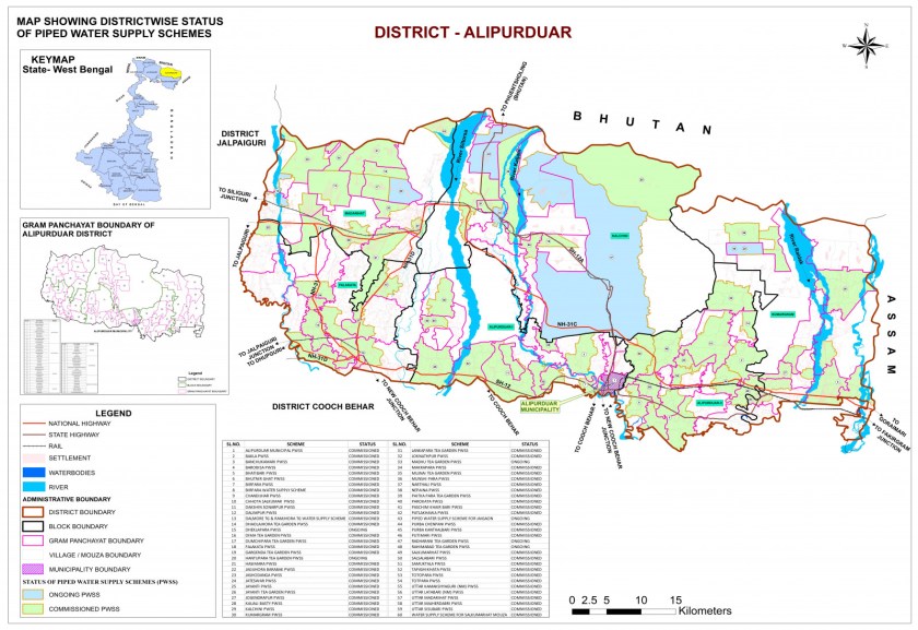 This place had been a very old trading centre. The region was connected with the famous trading route called Silk Route with Bhutan and Tibet. The remains of the traditional route are still visible in Santalabari, near Alipurduar. Alipurduar derives its name from the late Col. Hedayat Ali Khan who did admirable service in the Bhutan war and was stationed here as first Extra-Assistant Commissioner. The suffix “duar” (means door or gateway) has been added to the original name Alipur to differentiate it from the more well known Alipore in Kolkata and also because it is located in the Duars region. Alipurduar, the 2nd largest Sub-Division during British rule was created on 7 July 1876. In independent India, Alipurduar earned reputation as one of the largest sub divisions of the country. Alipurduar was an outlying sub division of Jalpaiguri district. The Sub division became the first independent posting of many bright IAS officers of West Bengal Cadre. The fact that Alipurduar sub division was as large as the other 2 sub divisions of Jalpaiguri district (both in geographical area & population) added fuel to the demand for separation of Alipurduar sub division from Jalpaiguri district. Finally, Alipurduar was bifurcated from Jalpaiguri district and made a separate district on 25 June 2014.